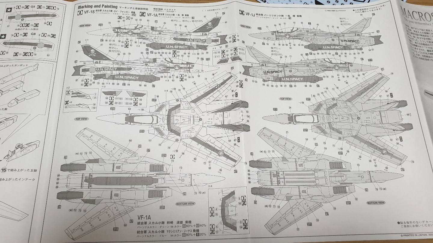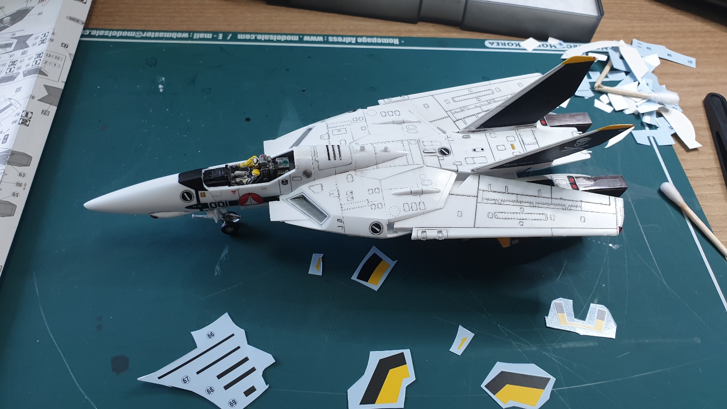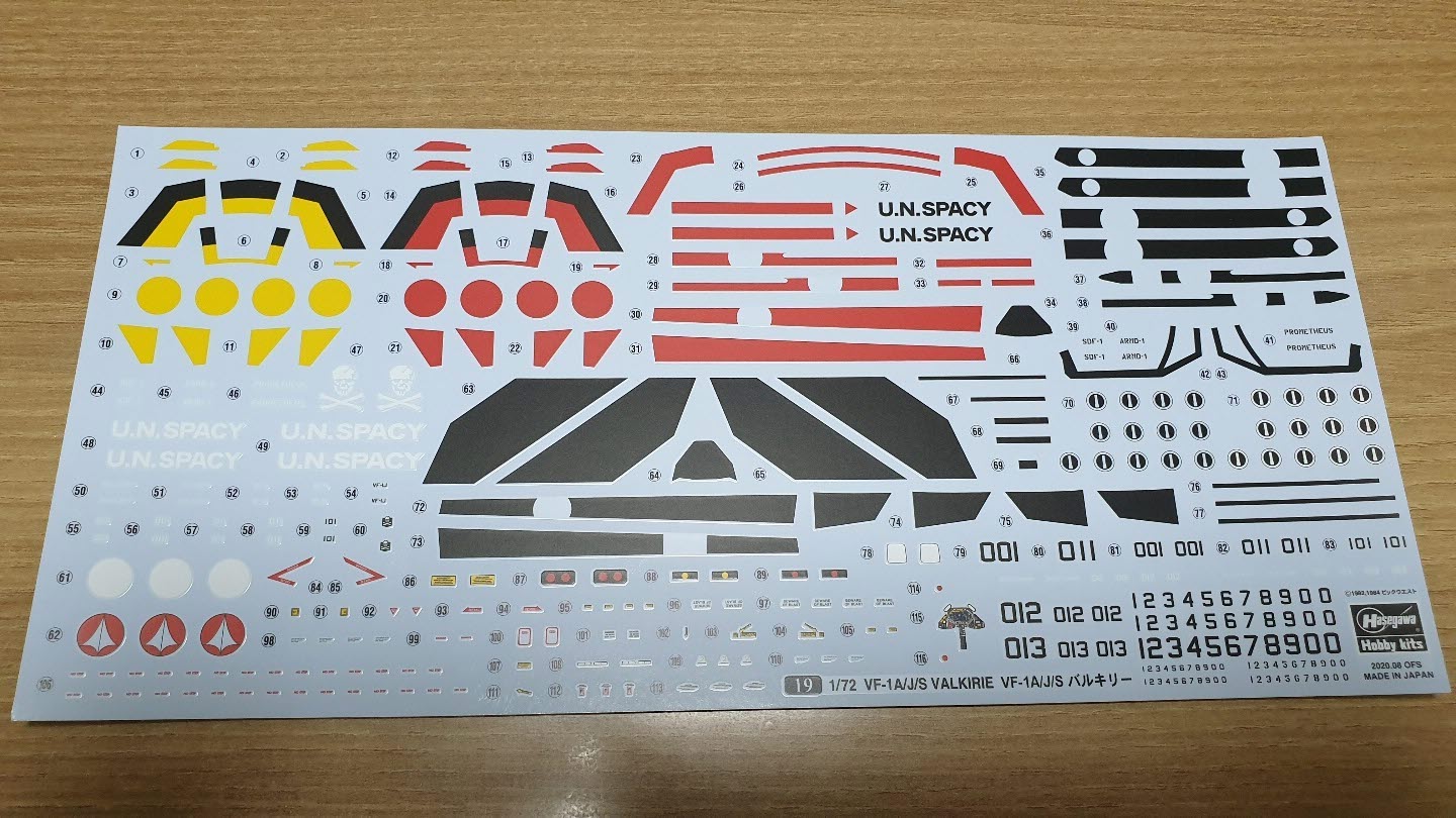 어마어마한 데칼 작업량입니다. 왼쪽의 하얀색이 "VF-1S"형입니다.