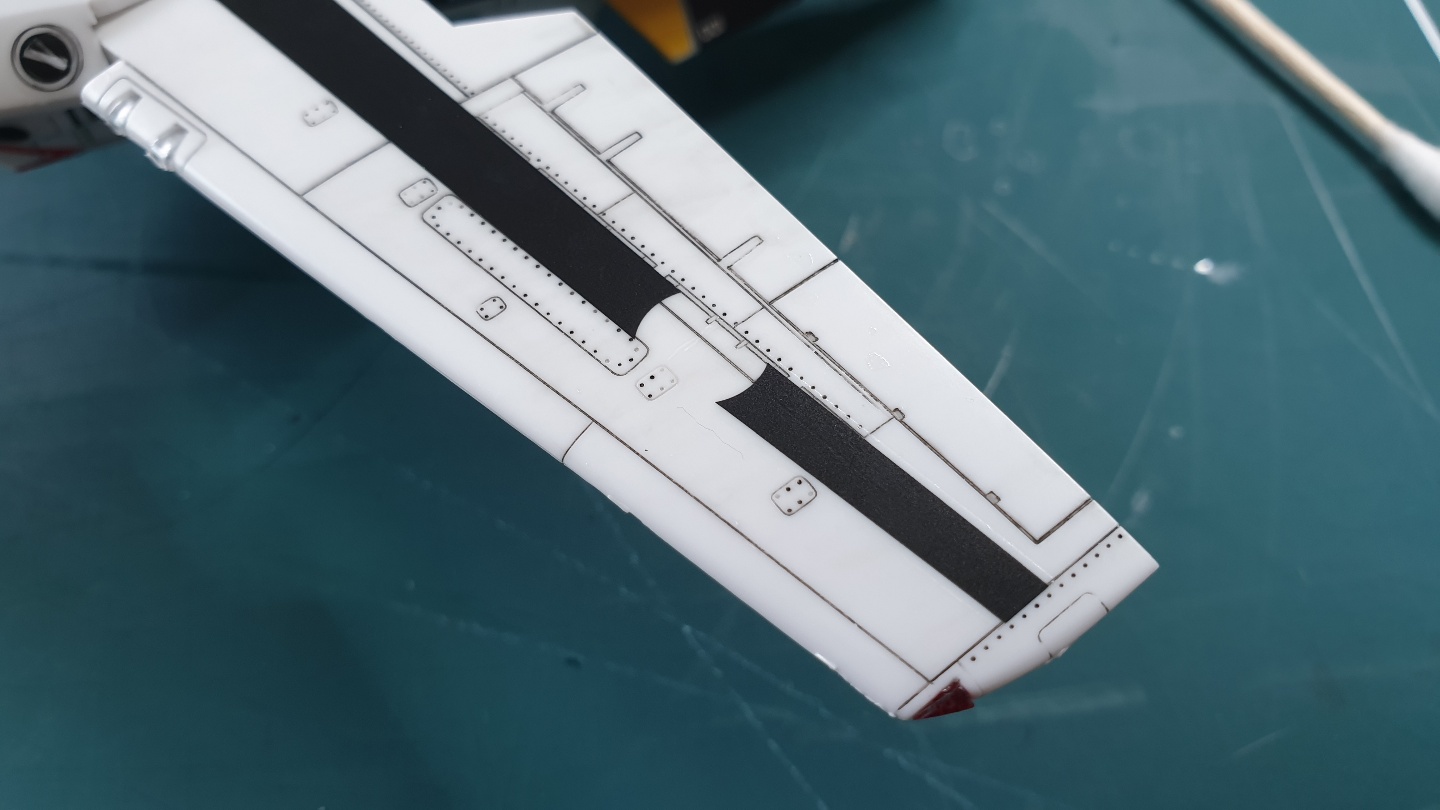 데칼을 부착한 채로 날개를 접으면 가동부위와 날개의 윗부분이 맞닫아있어서 데칼이 뜯겨나가게 됩니다.