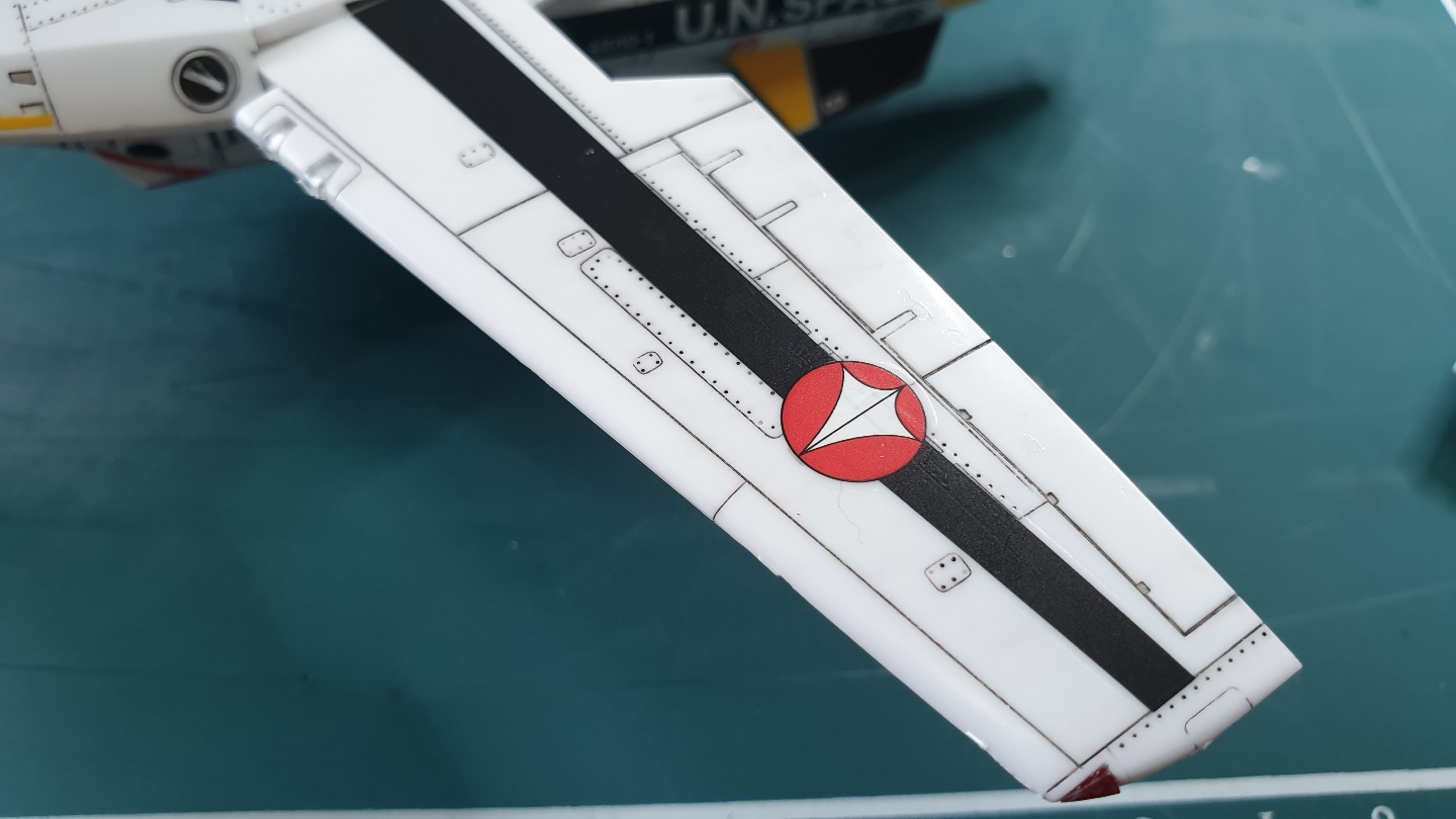 날개와 기수부분의 지구통합군 부대마크는 3장을 중복으로 부착해줘야 해서 매우 번거로웠습니다.